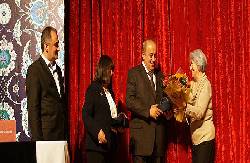 Önce teknik bilgi ve eserlerden örneklerin yer aldığı bir sinevizyon gösterisi yapıldı. Çininin M.Ö.3000’li yıllara kadar dayandığını, sürekli gelişerek Türk İslâm Sanatlarıyla olumlu etkilendiğini, İznik Çinisi’nin 17. yy’ da kaybolduğunu 1940’lı yıllarda Faik KIRIMLI Hoca’nın Çabalarıyla yeniden yapılmaya başlanıldığına değinildi.