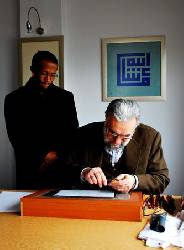H. Çelebi: Bu Çok soruluyor. Araplar da bunu istiyor, uğraşıyorlar. Çünkü klasik tarzda yazmak pek kolay değil. Hele Araplarda sabır arama. Onun için de bugüne kadar tanınmış yetişmiş, zirveye yükselmiş bir sanatkârları maalesef şu ana kadar yok. Bana da soruyorlar ben de onlara Hamit Bey’in başına gelen bir hadiseyle cevap veriyorum. Hadise şu: Hoca, Paşabahçe’de şişe cam fabrikasına giderdi. Haftada iki gün öğleden sonra orada tabakların üzerine yazılar yazardı. Oradakiler de yazıyı tabaklara basardı. Çok kıymetlidir onlar. 60 ihtilalinden sonra oraya bir binbaşı tayin etmişler. Her şeyin başına asker gelince tabii oraya da gelmiş. O’da müessesede gezerken görüyor, bir ihtiyar orada bir şeyler yapıyor. 3. hafta sonunda merak edip sormuş. Demişler ki efendim eski yazıları yazıyor. Bu zat gidip hocaya diyor ki “Bu eski yazıyla yazmasan, Latin harflerle yazsan olmaz mı?”, hoca “olur” demiş. Bu arada rahmetli yeni harfleri de güzel yazardı. “Otur şuraya dedim” diyor. Alıyor eline kalemi, ismin ne diye soruyor. Yazıp veriyor. Binbaşı susuyor. Sonra diyor ki: “ Bu yazı da diğeri gibi tarihi kıymet ifade eder mi, olur mu?” Hoca belki olur diyor. “Bu yazının bin yıllık bir mazisi var. O da bin yıl dayanabilirse olur” diyor.