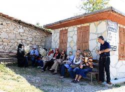 Çift kanatlı, tokmaklı kapılar ve bir tokmaktan ötekine geçirilerek "Komşudayım" mesajı verilen ipler. Anlaşılıyor merak etmeyin Çünkü siz de oralı oluveriyorsunuz. Bir müddet sonra değil. Köye, girişinde bir muhafız gibi köyü bekleyen mezarlığın hemen yanından adımınızı atar atmaz.